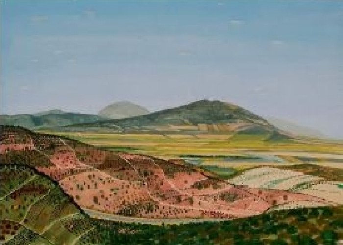 Image: Victor Majzner. Mt Tabor from Golan, 2006. Watercolour