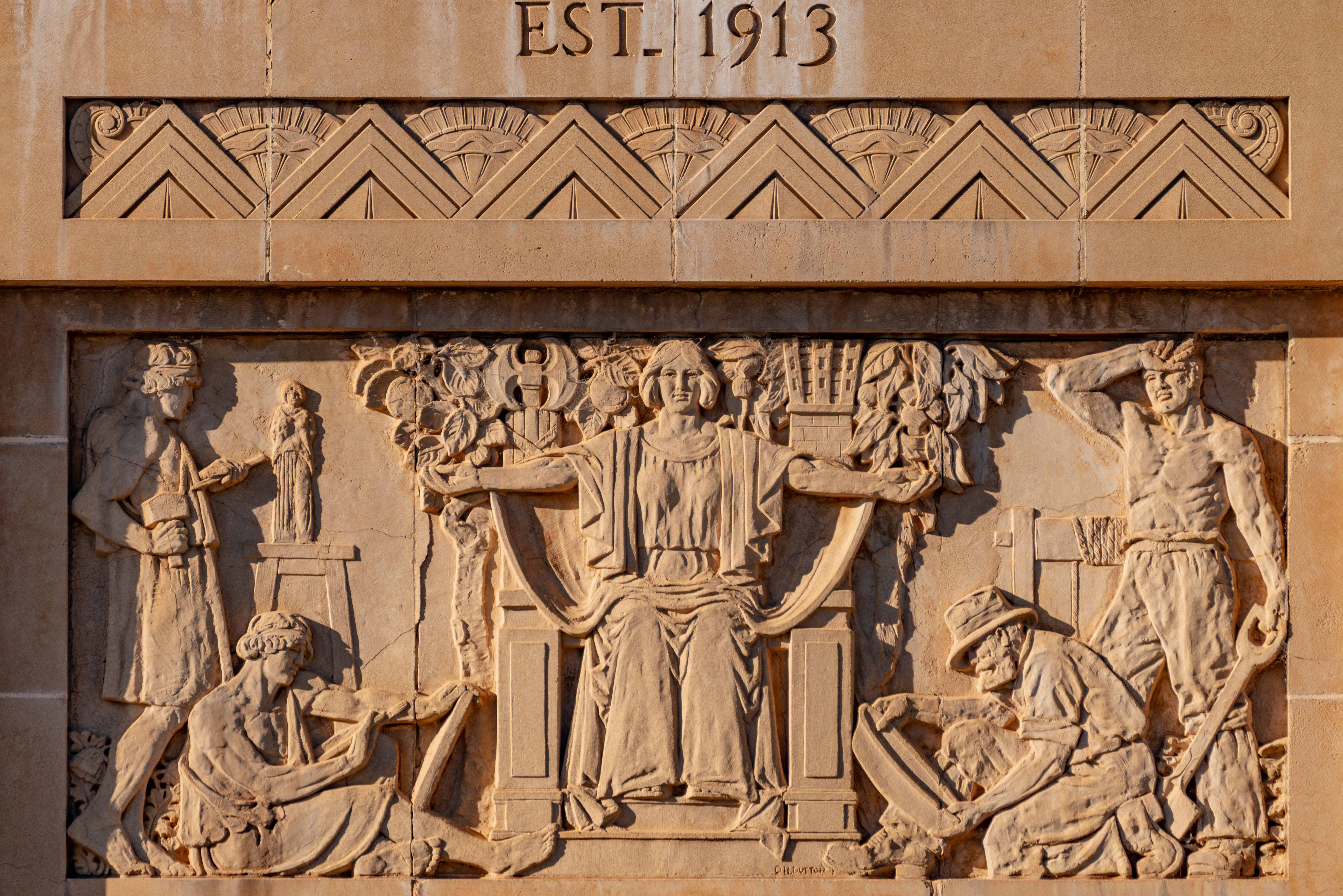 Architectural details have long been inspired by myth, heraldry and symbolism, dating back to the classical era. Such is the case for Orlando Dutton's bas-relief on the Museum's façade.