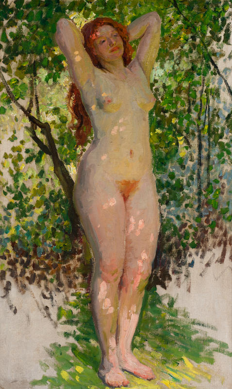 It’s not unusual for artists to modify their materials to suit the environment. For example, the Australian Impressionist painter E. Phillips Fox prepared his own canvases when he was travelling, as seen in On the Mediterranean Coast from the CAM collection. Fox painted this work while on an extended painting trip around the Mediterranean and Northern Africa with his wife Ethel Carrick. It appears that Fox originally used these canvases for practical reasons when working ‘in the field’, however, he evidently liked the resultant surface effects and they became an intentional aesthetic feature of his works. His Standing Nude in the CAM collection was painted in the garden of his Paris home (65 Boulevard Arago). It also has a home-made priming layer, which creates a matt, pastel-like surface effect. Despite painting this work in Paris, with easy access to commercially prepared canvases from his colourman (the Foinet/Lefebvre firm, situated just a few blocks away at the corner of Rue Brea and Rue Vavin), Fox instead chose to prepare this canvas himself with an absorbent priming layer. This helps to create the diffraction of light from the rough, matt surface, which contributes to the verisimilitude of the shimmering heat reflected from the model’s flesh.