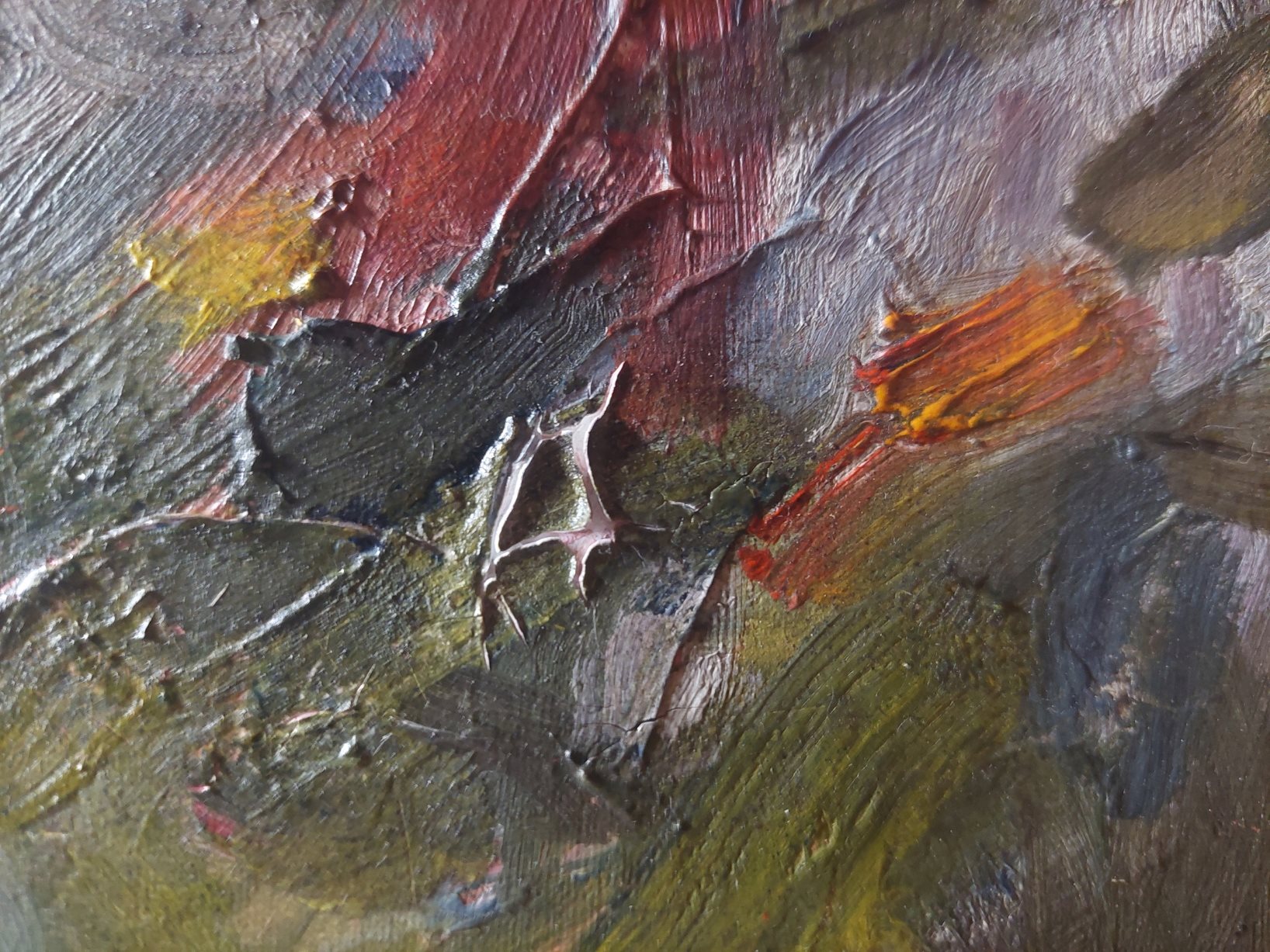 One area of paint was cracked into sharp shards that were vulnerable to being snapped-off. I used a solvent-vapour softening technique to gradually relax this thick, brittle paint. Finally, I ‘inpainted’ some small paint losses and returned the painting to the frame. In a Chelsea Garden is now clean and conserved, ready to be enjoyed by CAM visitors once again, but (sadly for me) no longer in my studio.