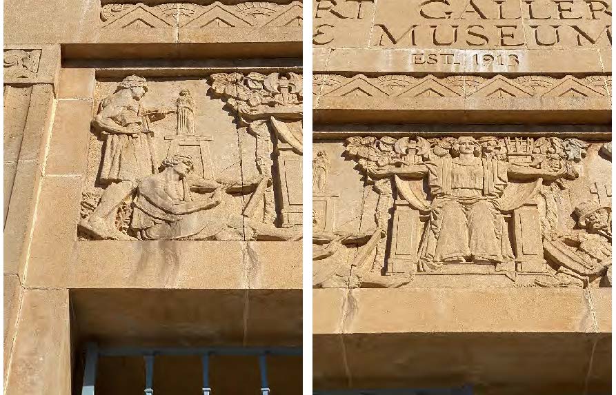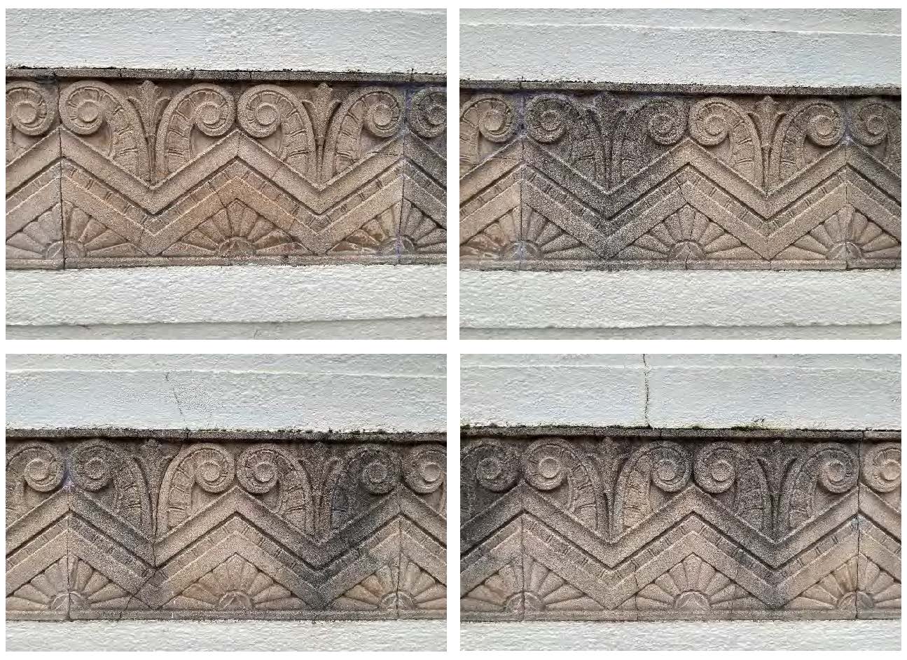 When invited to assess the Art Deco façade gracing the front of the gallery I found myself face to façade with an intricate intersection of human and natural influences. Our objective as art conservators when visiting a site is to first evaluate the condition of heritage material in that moment. We want to take a snapshot of a period in time, around which to compare previous assessments and identify any changes that may occur in the future. Importantly, the object’s condition also informs recommendations for remedial works necessary to stabilise deterioration.